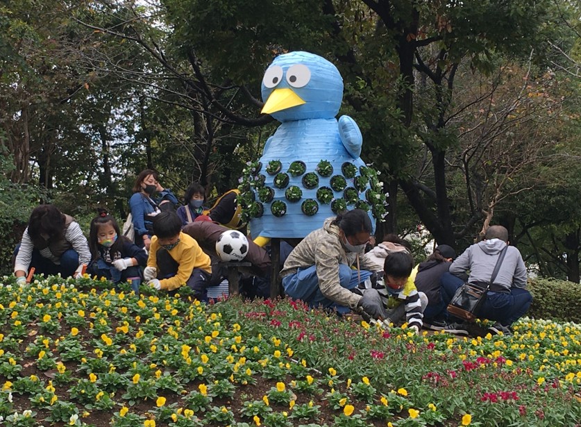 2020年11月3日(火)令和3念のオリンピック開催に向けた、埼玉スタジアム2OO2公園の魅力アップのイベントを(株)東農園を中心に開催しました。25名の参加者が花植えを楽しみ、見事なコバトン画壇が完成しました。