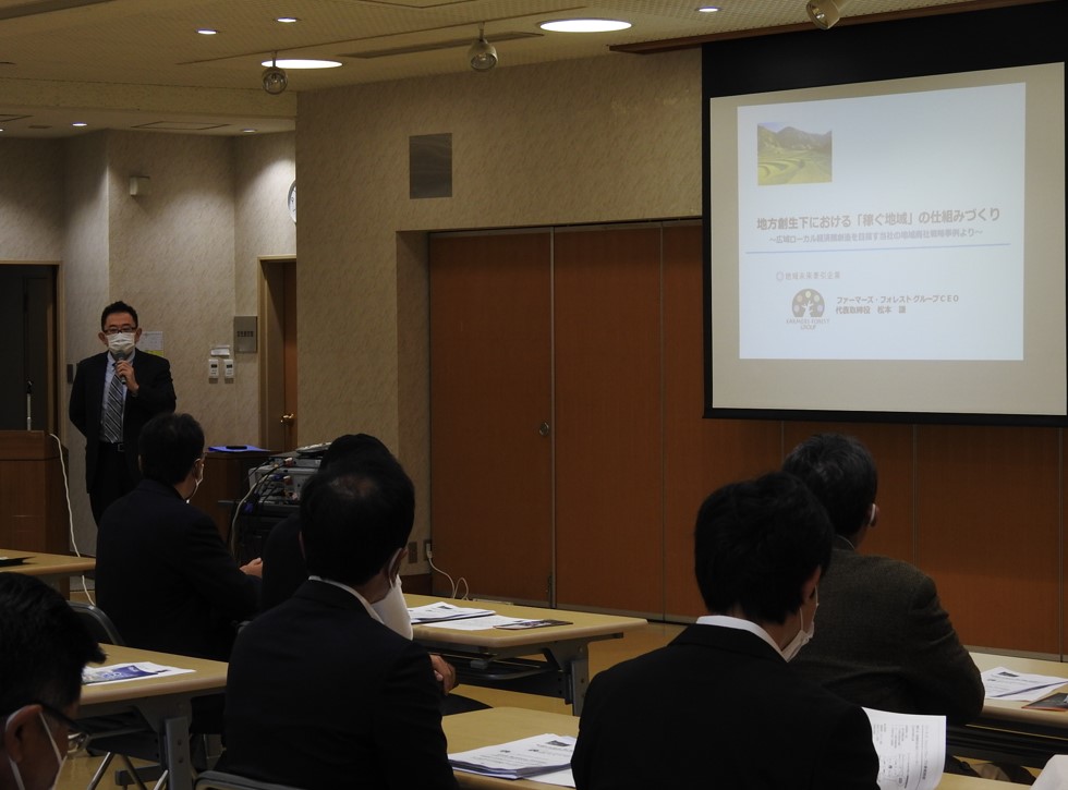 指定管理を請け負っている(株)ファーマーズ・フォレスト 代表取締役社長 松本 謙 氏の講演