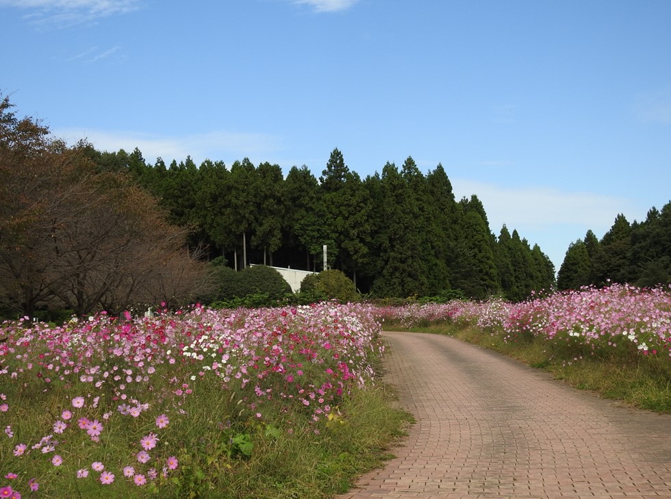 広大な園内は自然がいっぱい。コスモスが咲き乱れていました。